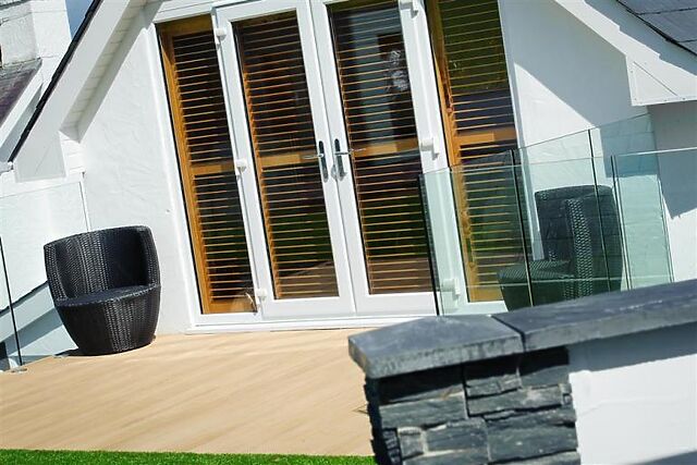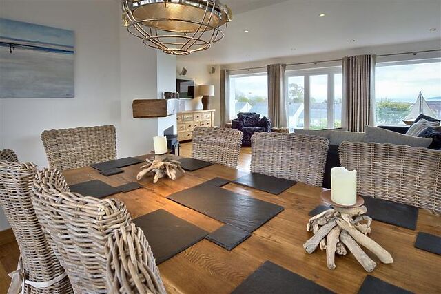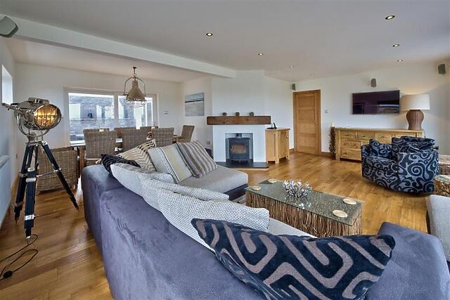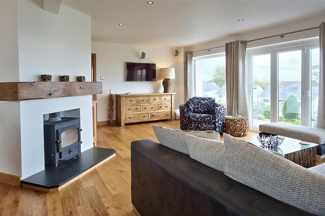 Outside, you'll find a large slate terrace with a glass infinity balcony offering breathtaking views of St Tudwal’s Island and Cardigan Bay.