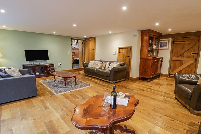 Curl up in the snug or settle into the sitting room with a film on the Smart TV, then challenge your loved ones to a round of pool in the games room. Rinse off the day’s medals of mud in one of three bathrooms or the ground-floor shower room, as the dishwasher and washing machine take care of your plates and laundry.