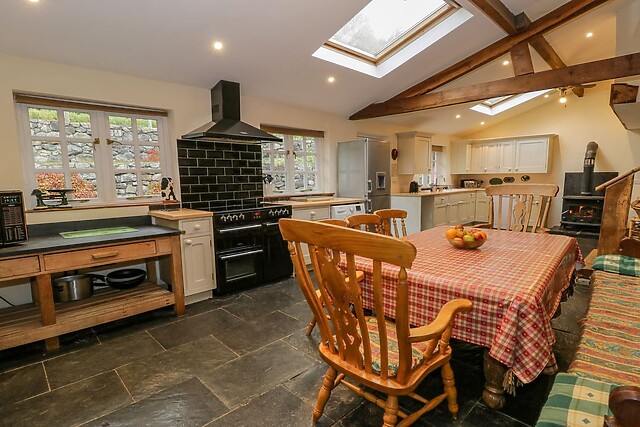 Step into your new haven, complete with original features, oak beams, and exposed stonework throughout. A woodburning stove waits ready in the kitchen/diner, dining room, and games room to toast the warmth back into your well-trekked toes, while a scrumptious supper is cooked from the double range electric oven and hob, microwave, and two fridge/freezers.
