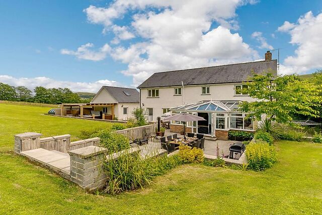 Relax in the conservatory with underfloor heating, or unwind in the cosy living room with its colour-changing flame-effect fire. For entertainment, a games room, snooker room, and a hot tub await, set within 4 acres of picturesque land.
