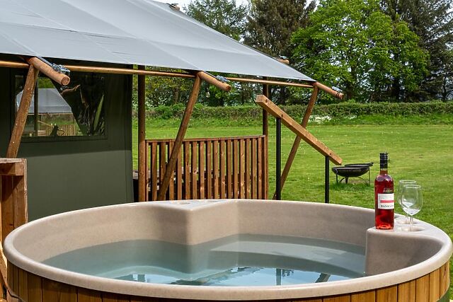 Escape reality and take refuge in nature at this tranquil safari-style lodge with a private wood-fired hot tub, tucked away on the owners working farm at the heart of the Brecon Beacons National Park; countryside exploring doesn’t get more peaceful and authentic than this. After exploring your unspoilt rural surroundings, follow the inviting warmth of the wood burner into the open-plan living/kitchen/dining room and hunker down on the comfy corner sofa amongst the earthy colour palette that perfectly reflects the green scenery that surrounds you.