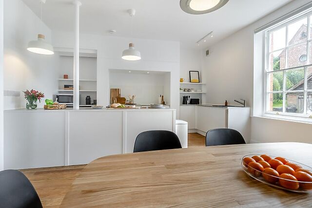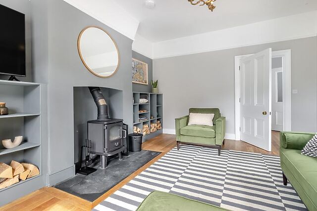 Exploring further, there’s a characterful snug with a library and a games area with a football table and French doors leading out to the quiet private patio. The ground floor also has a handy boot room and WC.