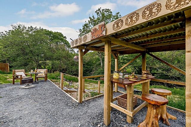 Outdoor space and on-site facilities - Private garden overlooking the tranquil river for morning coffee or evening star gazing. - Hot tub with stunning views of the valley for ultimate relaxation.