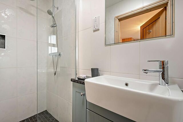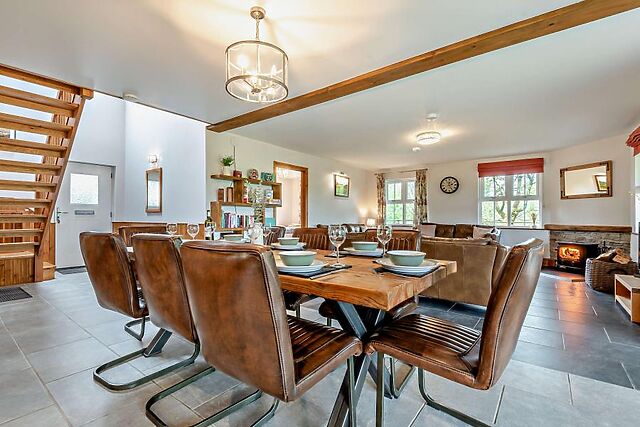 Adding warmth and ambience during cosy winter evenings, an inviting wood burner takes centre stage in the lounge area, perfect for unwinding with a movie. The ground floor features two indulgent king-size zip-and-link bedrooms, one with an en-suite shower room, alongside an additional separate wet room for added convenience.