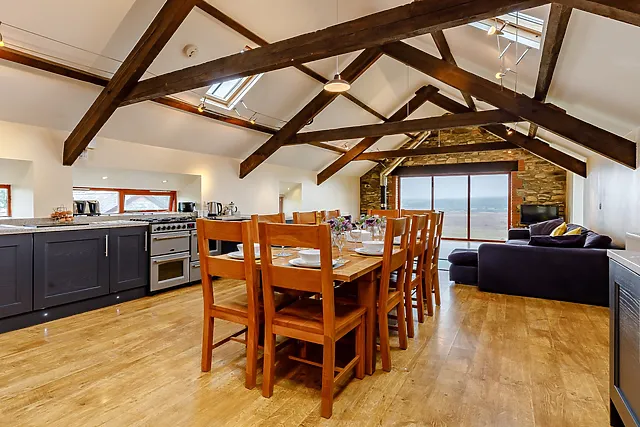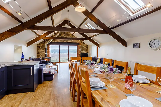 The barn conversion retains its original charm while providing modern comforts, including a luxurious private hot tub, where you can soak up the panoramic vistas.