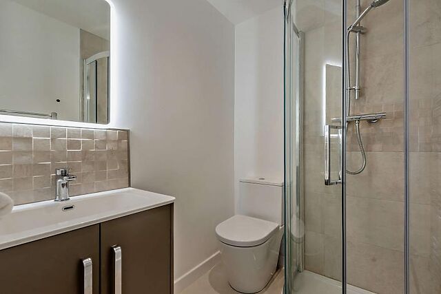 It's a reverse-level space with four bedrooms on the ground floor. Three are en-suite, and an additional bathroom can be found upstairs by the utility room.