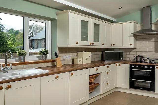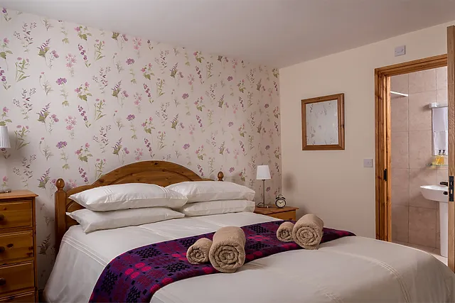 The accommodation boasts four bedrooms – three with double beds and one with bunk beds. There are three bathrooms: one family bathroom with a shower over the bath, one en-suite wet room with a shower downstairs, and another en-suite with a shower, ensuring ample facilities for all guests.