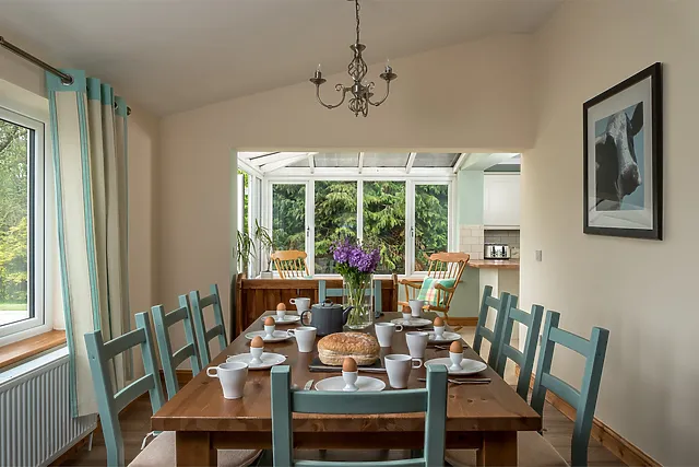 Inside, discover a spacious lounge with a wood burner for cosy evenings, a large kitchen equipped for culinary exploits, and an adjoining dining room for stylish communal meals.