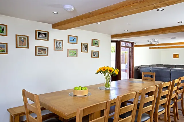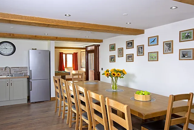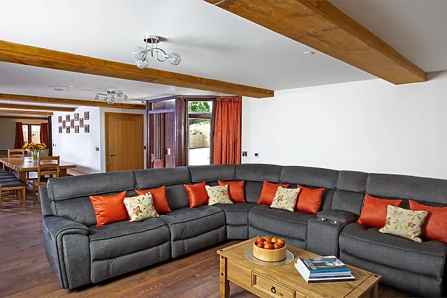 Pen Y Glyn Barn is designed for socialising, with a large open-plan living space and a farmhouse-style kitchen, ideal for communal dining and entertainment.