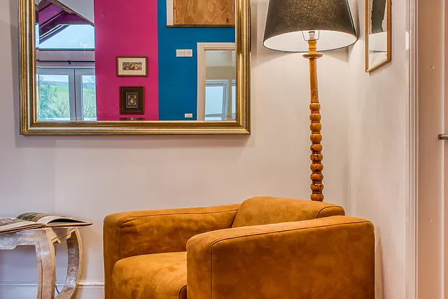 The vibrant colours, exposed beams, and oak floors complement the contemporary style, while creature comforts add a touch of luxury.