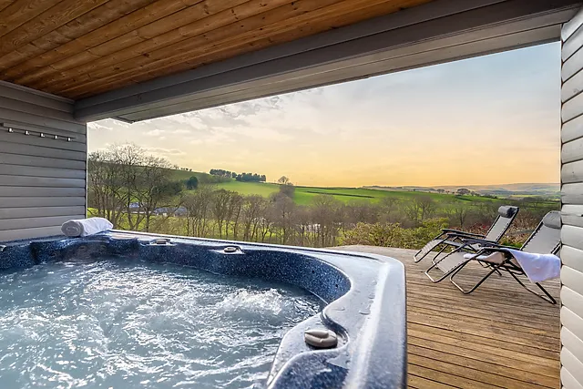 Yes, this accommodation features a luxurious outdoor hot tub where guests can relax and enjoy the fresh hillside air.