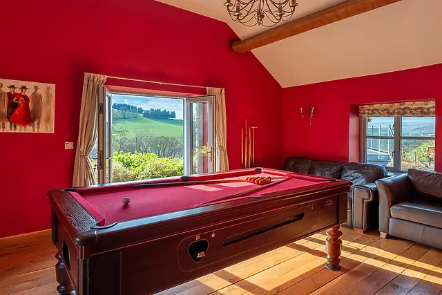 Indulge in the warmth of the wood burner after a day of exploring, or unwind in the outdoor hot tub while soaking up the hillside air. The property also boasts a large sauna and a games room with a full-size pool table, ensuring entertainment for everyone.