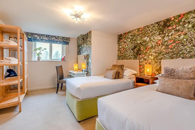 Its open-plan design, complete with a breakfast bar and adjacent larder, makes hosting large dinners a breeze. If you’d rather not cook, you can arrange for an in-house chef to treat your group.