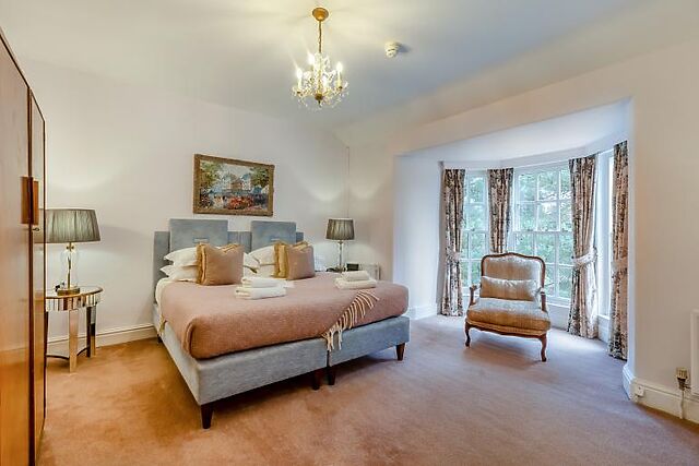 Meals can be enjoyed in the elegant dining room, seating 14, or in the expansive Garden Room, which accommodates up to 44 guests. With 11 bedrooms spread across three floors, each room has been uniquely designed to reflect the property’s rich history.