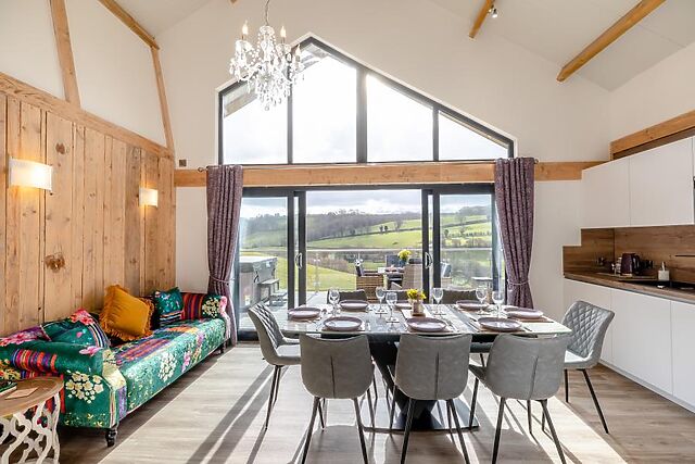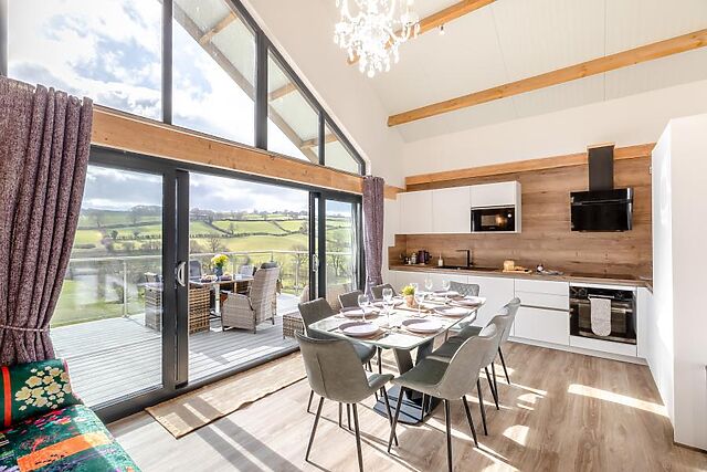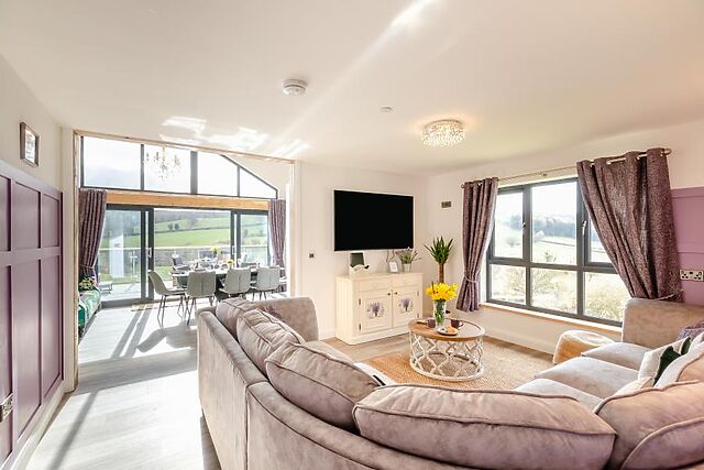 Arrive at this stunning property and admire your floor-to-ceiling glass wall framing first-rate countryside views. Continue through to the open-plan lounge/kitchen/diner, where a vaulted ceiling and contemporary furnishings will have you mesmerised from the get-go.