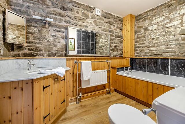 A shower room is also located on this floor. For those who prefer a relaxing soak, there's a dedicated bathroom with a bath on the ground floor.