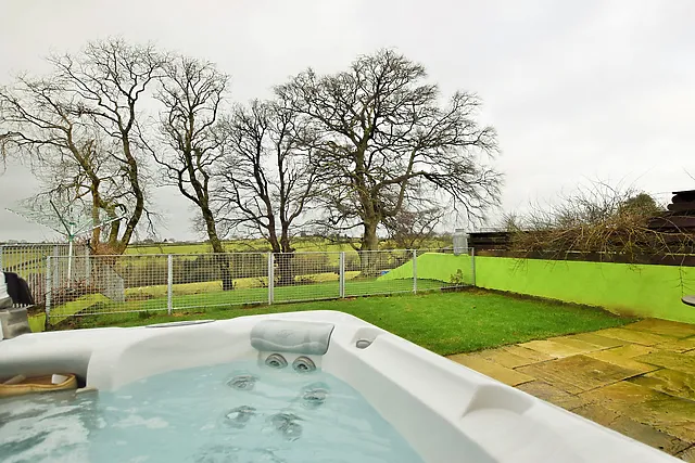 Step outside to your own private hot tub, the perfect spot for relaxation after a day of exploring. The enclosed garden with a patio area offers a peaceful setting to enjoy the rural vistas.