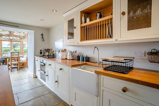 Enter the stone abode, which has underfloor heating downstairs, to find accommodation that blends rustic features with modern comfort and style. Head into the snug to cuddle down in front of a glowing wood burner or into the lounge to watch the Smart TV with the bi-folding doors pulled right back to the garden in summer.