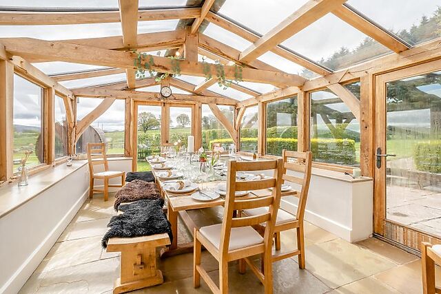 The fabulous kitchen/diner features everything you will need to help you prepare hearty feasts with your own Welsh ingredients. Dine together under the stars in the gorgeous, glass and oak conservatory section.