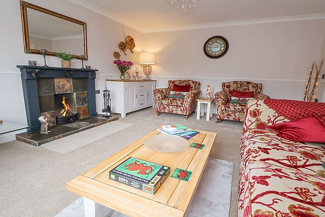 The sitting room, with a Smart TV and open fire, is ideal for unwinding with your favourite shows or enjoying a quiet evening in. Outside, the rear garden offers the perfect spot to enjoy a morning coffee or evening drink.