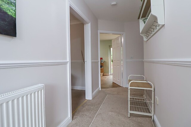 The bungalow is set in woodland, backing onto wildlife park area - woods, walks and birds, can walk dogs behind the cottage in park area also. Inside, the single-storey property features three welcoming bedrooms—two doubles and a twin—each with storage for your belongings.