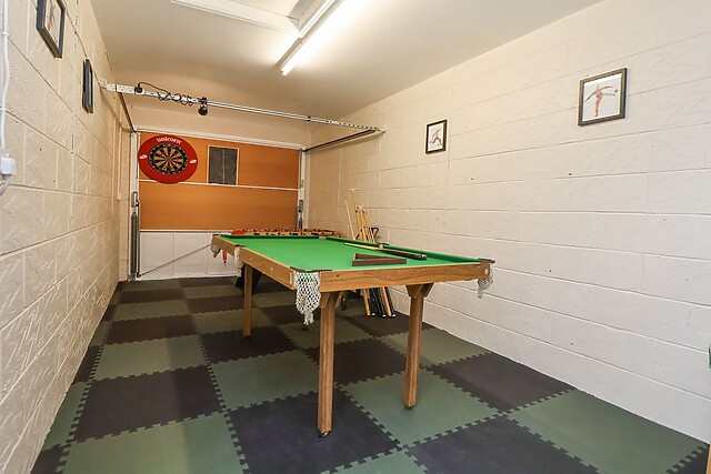 There’s a patio with a sail canopy, comfortable seating, an egg chair, and a private hot tub—ideal for soaking under the stars. A garage games room adds to the fun, featuring a pool table, a football table, darts, and other games—plus bike storage for those exploring on two wheels.