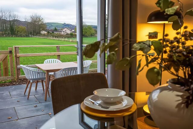 Whether you’re arriving by car and settling into the nearby parking or stepping off the train at Llanrwst station, the transition into your North Wales retreat is effortless. Step inside to find a thoughtfully arranged open-plan living space, where natural light and wooden flooring create a sense of warmth and flow.