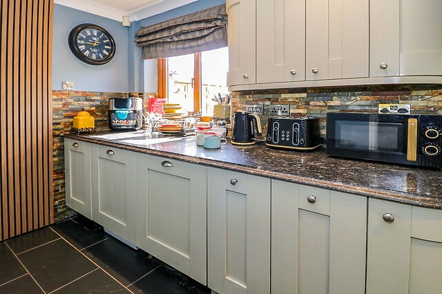 Whether you’re whipping up a homemade meal or winding down after a day out, this space blends convenience with homely charm. The open-plan living area invites you to slow down and relax.