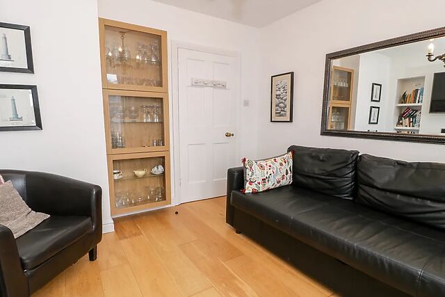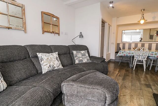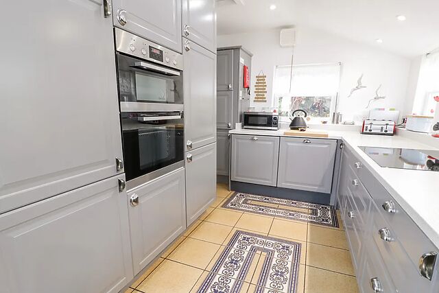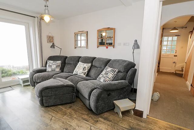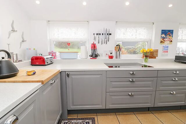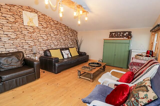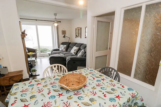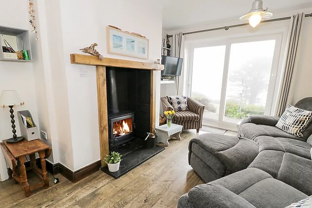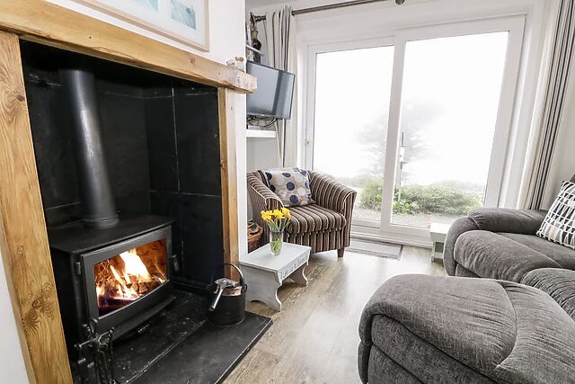 After unloading your belongings in the convenient off-road parking space, wander up to your welcoming home-from-home, immediately captivated by the spacious Swiss cabin where you and your loved ones can linger over sweeping sea views. Step inside and unwind in the cosy sitting room, where the glow of the woodburning stove envelopes you in warmth as you switch on the TV for a relaxed evening of entertainment.