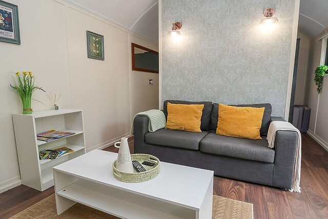 When sleep calls, freshen up in the sleek shower room, before cosying up in the king-size bedroom, a space partitioned from the living area by a feature wall. Make memories with a stay at The Retreat.