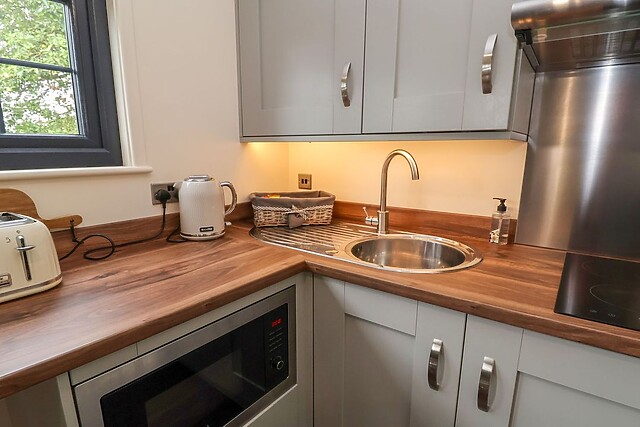 Ascend into a contemporary property, where care has been taken to create a stylish and welcoming open-plan living space, boasting a well-fitted kitchen with a breakfast bar for romantic meals with your significant other. The sitting area encourages you to relax beside the electric fire stove and enjoy a movie marathon, complemented by a glass of fizz.