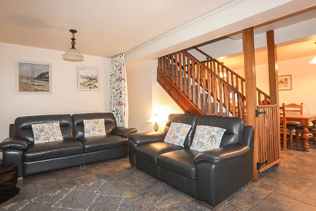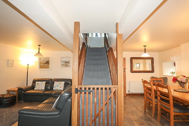 The accommodation boasts three cosy bedrooms, two bathrooms, and welcomes pets, ensuring that your furry friends can join in on the fun. The heart of the home is a living/dining room with a multi-fuel stove, perfect for gathering and creating memories.