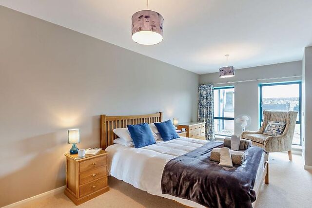 Upstairs, the second floor features two further king-size bedrooms, each with stylish en-suite facilities and superb views. Your living space extends into the enclosed courtyard garden, which has a cosmopolitan feel thanks to paths, feature planting and a selection of seating areas.