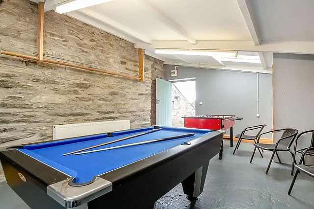 Yes, guests can enjoy a separate games room equipped with a pool table, table football, and darts, perfect for entertainment on site.