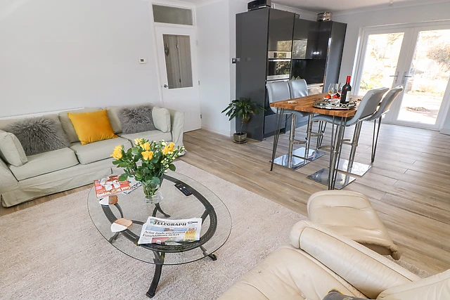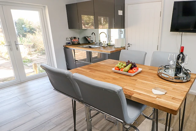 Inside, make the most of the open-plan living space by cooking up a storm in the well-equipped kitchen before settling down in the dining area whilst you watch your favourite TV series on the wall-mounted Smart TV. As the evening draws to a close, retire to one of three well-presented bedrooms, each with a plush bed where you can drift off to a night's refreshing embrace.