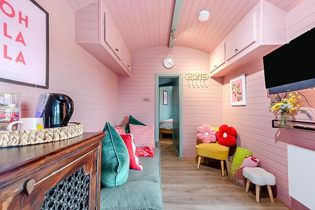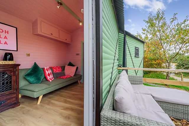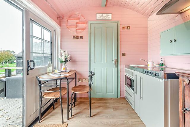 Further down the coast is the walled town of Tenby (5 miles) with its iconic castle ruins, four beaches, and several galleries and museums. Park up outside the open-plan carriage and climb the little steps into a world of history and colour.