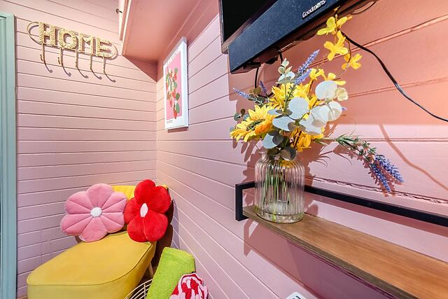 Immediately as you step in you will find the living area and a compact kitchenette. You can rustle up something to eat and curl up on the sofa to watch a film or a TV show.