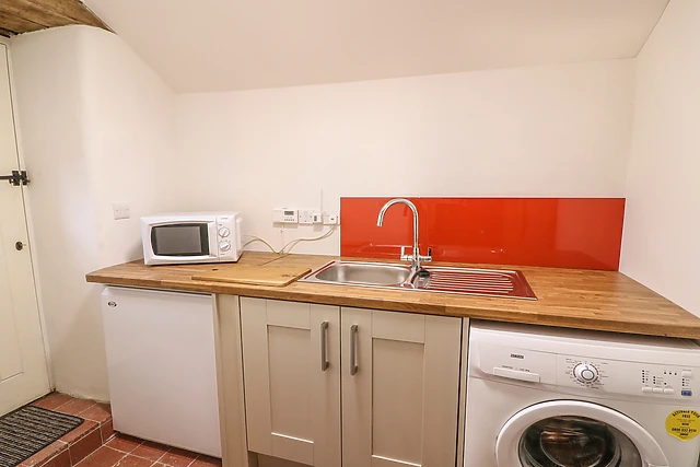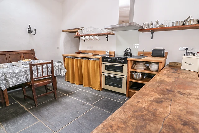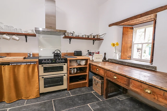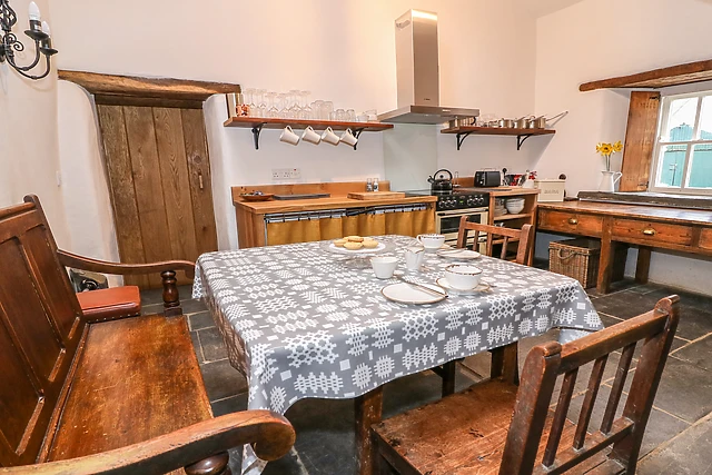 Upon entering the property, you are welcomed to a well-appointed living room, posing stunning slate flag floors and charming exposed beams. In here you can snuggle up with your loved ones in the cosy sitting area in front of a warming inglenook fireplace with a woodburning fire.