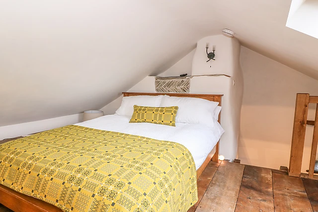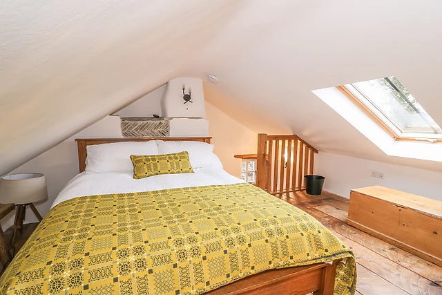 The downstairs bathroom has been finished with a luxurious touch, housing a spacious walk-in shower, a separate bathtub, basin and WC. Follow the traditional crog loft stairs up to the second elegantly decorated bedroom, boasting a double bed and a large skylight window, filling the space with a bright natural light.