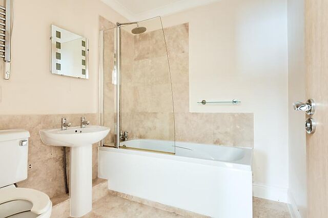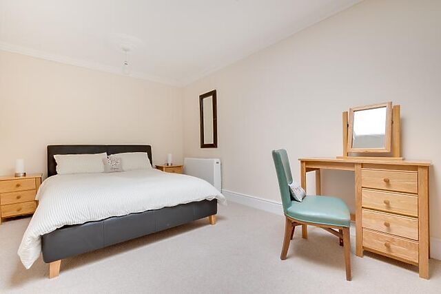 The second bedroom is located at the rear of the property and also has access to a separate bathroom. Both bedrooms offer comfortable sleeping arrangements and ample storage space.