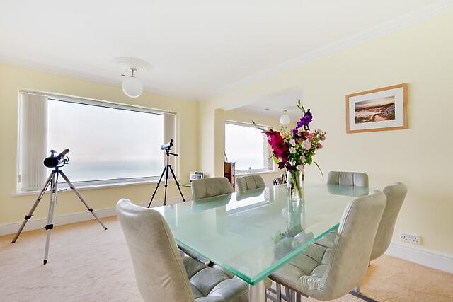 The open-plan layout and large bay windows ensure you can enjoy the stunning scenery from every corner of the property.