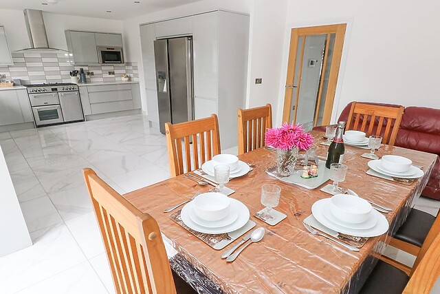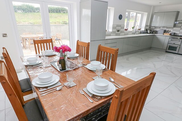 Begin your holiday after parking in the off-road parking before crossing the threshold into your new home-away-from-home. Find a stylish sitting room with recliner sofas, the perfect place to unwind in front of the Smart TV before heading into the fully-equipped kitchen/diner where you can rustle up a delicious dinner for everyone.