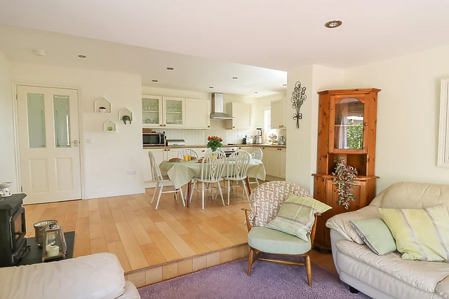 With a backdrop of mature trees and the sound of bird song, be welcomed into this well-presented cottage, parking off-road beside the property and unpacking with ease. Catering to your every need with loads of kitchen facilities, Lavender Lodge invites guests to take a seat in the light and airy open-plan living space, with a sitting area beside the patio doors and a welcoming woodburning stove.