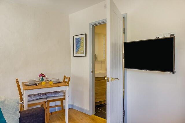 Enter this superb open plan studio, where high-quality furnishings, whitewashed walls, and furniture that hugs you as you relax. Lose track of time as you kick back in front of the smart TV, then use the compact but functional kitchen space to prepare soul-warming bowls of Welsh stew and dumplings.