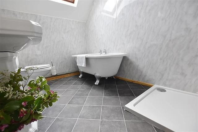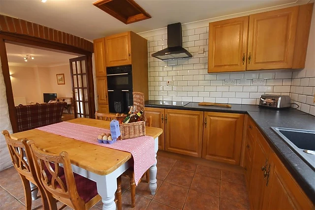 The cottage boasts a cosy sitting room with a dining area, perfect for relaxing evenings in. The well-equipped kitchen ensures a comfortable stay, while the inclusion of a hot tub adds a touch of indulgence to your break.