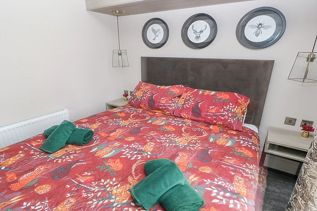 Indulge in the ultimate relaxation with your private hot tub, set on a front decking area where you can soak up the tranquil surroundings. The lodge's open-plan living space, complete with a Flame effect Electric Fire, provides a warm and inviting atmosphere for evenings spent unwinding.
