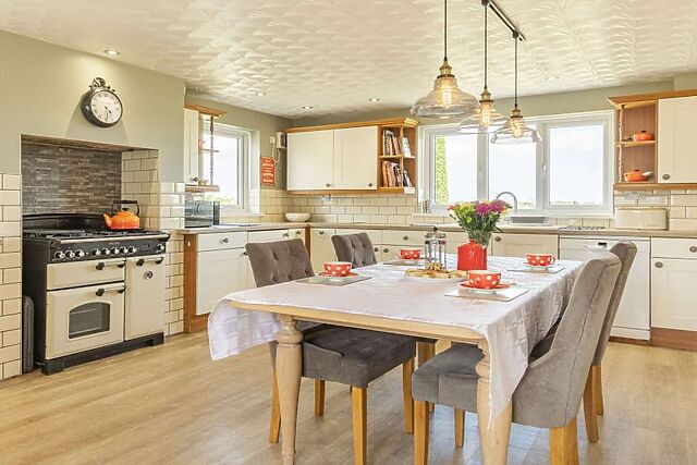 The property's interior is equally inviting, with a cosy wood burner and a Smart TV for entertainment.