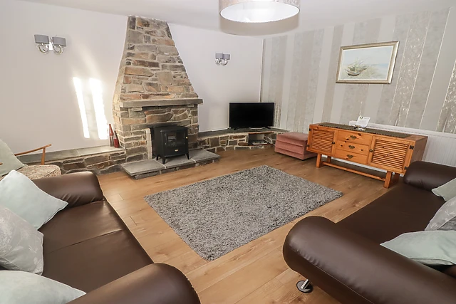 The sitting room houses an electric fire in a stone fireplace, as well as a selection of leather sofas where you can recline with a good book. When sleep calls, freshen up in a stylish ground-floor shower room before settling down into either a king-size or one of two twin bedrooms.