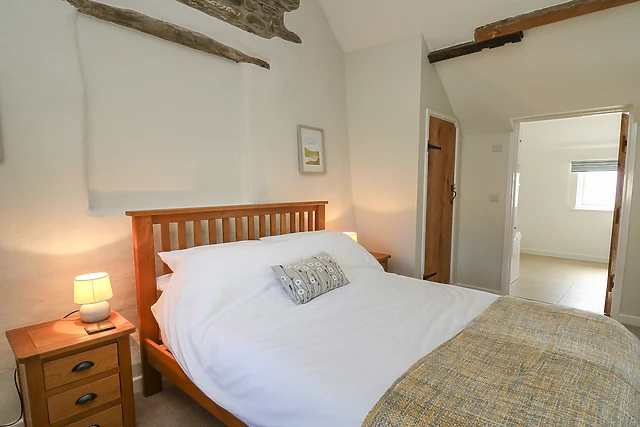 The accommodation sleeps two guests in a cosy double bedroom, complete with an en-suite bathroom, ensuring a comfortable and intimate stay.