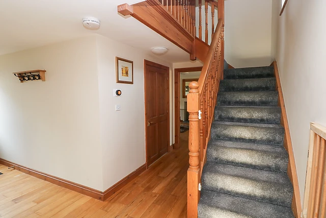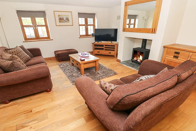 After dinner, make your way through to the sitting room, where you can curl up on the plush seating in front or your favourite series on the Smart TV, as your canine companions snuggle up by the crackling woodburning stove. Completing the ground floor is a stylish bathroom, where you can freshen up in the walk-in shower or with a soak in the bath.